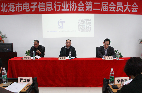 2014年12月29日,北海市電子信息行業(yè)協(xié)會第二屆會員大會暨二屆一次理事會、監(jiān)事會在中國電子北海產(chǎn)業(yè)園隆重召開。北海工信委黃忠東主任出席會議并作重要講話。?