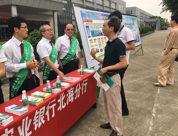 金融服務(wù)助力園區(qū)企業(yè)。配合營改增及雙創(chuàng)活動,農(nóng)業(yè)銀行北海分行主動走入園區(qū),宣傳金融服務(wù)政策,為園區(qū)進(jìn)出口企業(yè)國際貿(mào)易給予最便利的結(jié)算及優(yōu)惠,為輕資產(chǎn)企業(yè)量身定造最便捷的融資渠道,助力解決園區(qū)企業(yè)資金需求。