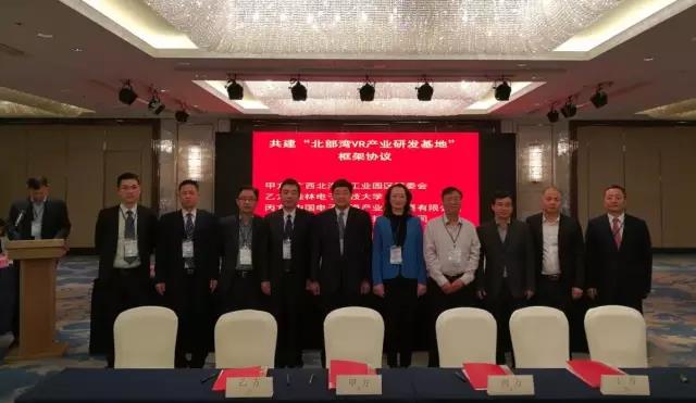 2017年1月8日,在深圳召開的“廣西電子信息產(chǎn)業(yè)桂電校友招商引資懇談會(huì)”上,在自治區(qū)工信委徐莉青副主任、北海市委常委、副市長(zhǎng)曾子祥,桂林電子科技大學(xué)校長(zhǎng)古天龍等領(lǐng)導(dǎo)見(jiàn)證下,桂林電子科技大學(xué)、北海工業(yè)園區(qū)管委會(huì)、中國(guó)電子北海產(chǎn)業(yè)園公司與北京幻鯨數(shù)字科技有限公司簽署合作協(xié)議,建設(shè)北部灣VR產(chǎn)業(yè)研發(fā)基地,標(biāo)志著中國(guó)電子北部灣信息港軟件研發(fā)版塊進(jìn)入新的發(fā)展階段。
